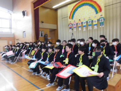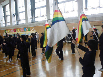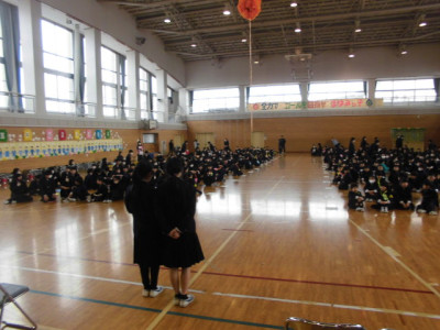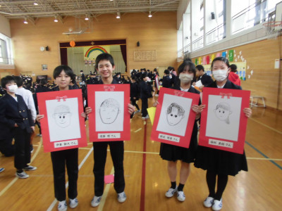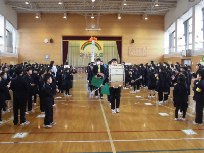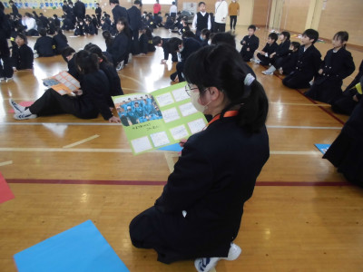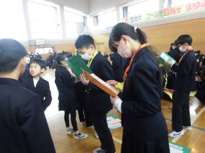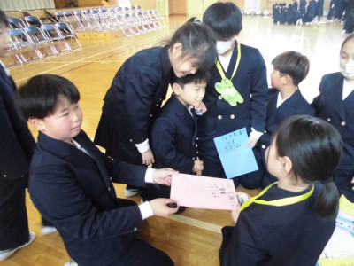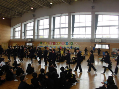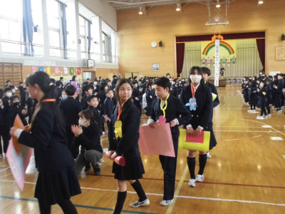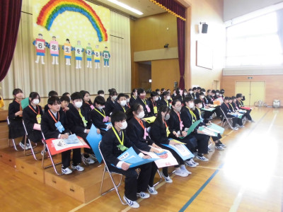 全校集会で、先日の南達方部小学校交歓陸上競技大会の表彰を行いました。素晴らしい記録を出すことができた6年生に、みんなで大きな拍手をおくりました。