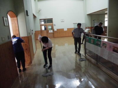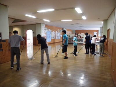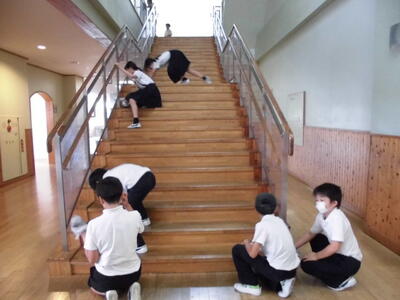 放課後のワックスがけにむけて5・6年生が廊下や階段をきれいにしてくれました。