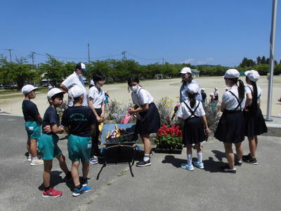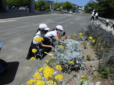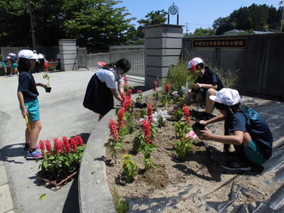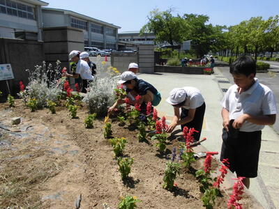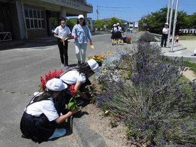 環境委員会の皆さんが人権の花を花壇に植えてくれました。