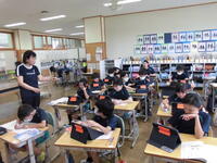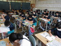 1年2組は国語科。復習問題に挑戦です。