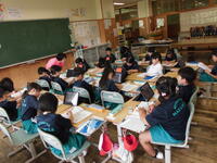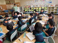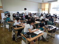 2年2組は国語科「スイミー」の学習。どのような場面があったかを考え合いました。
