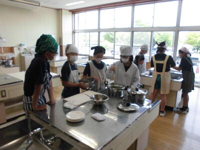 2校時目。5年2組は家庭科です。調理実習を行いました。