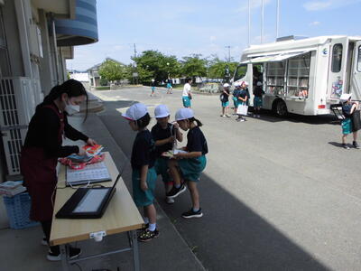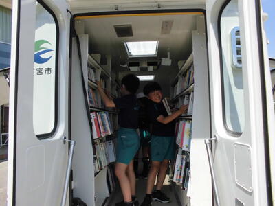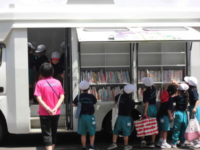 今日は市の移動図書館モトム号が来校しました。