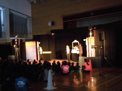2024年6月17日 13時37分3・4校時に鑑賞教室が開かれ、人形劇「ふしぎ駄菓子屋 銭天堂」を鑑賞しました。