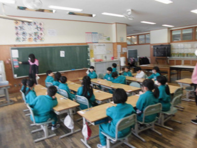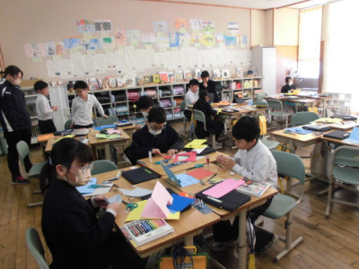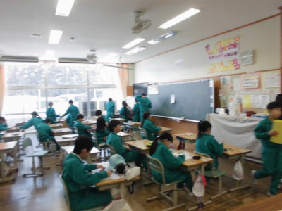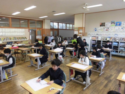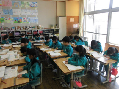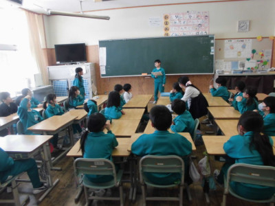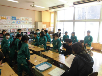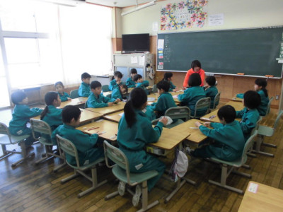 3年2組は発表練習。2年生にわかりやすく伝えようとがんばっています。