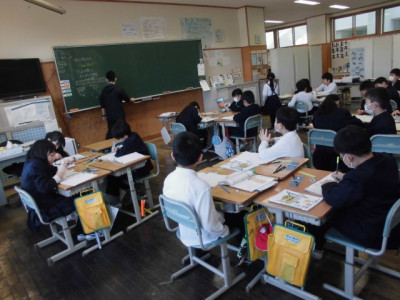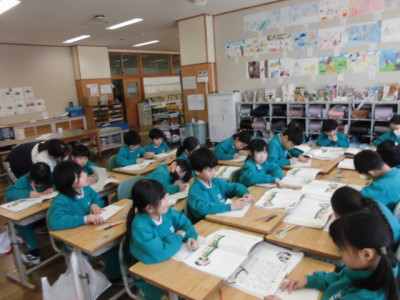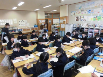5年2組は国語科「大造じいさんとガン」の学習です。