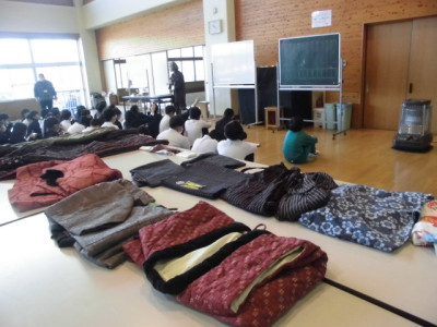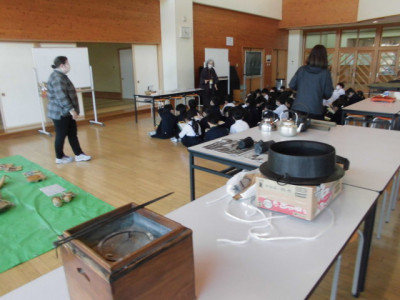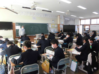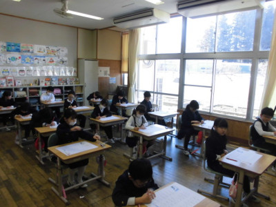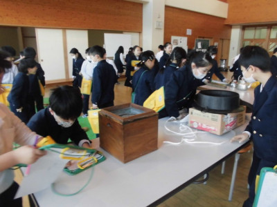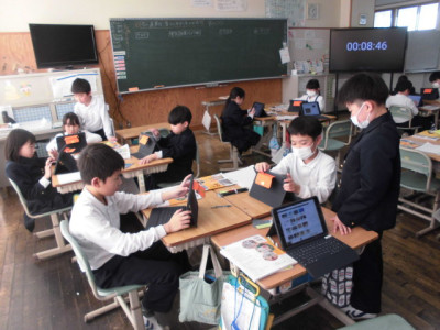 4年2組は算数科。防災に関係する資料をもとに考え合いました。