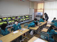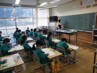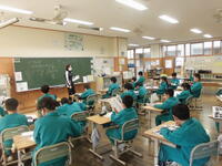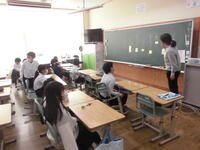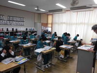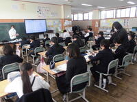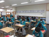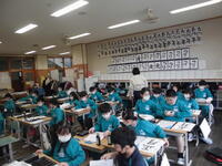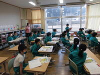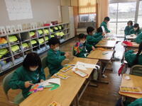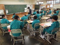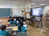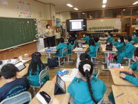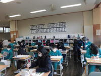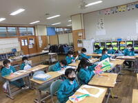 6年1組は外国語科。お正月に何をして過ごしたかを英語で表現します。