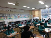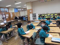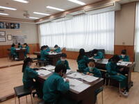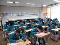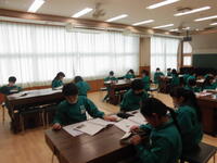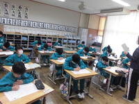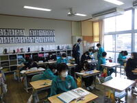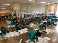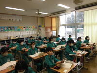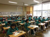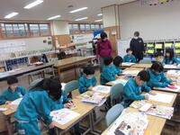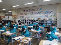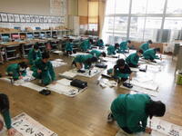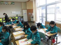 3年1組は書写。書き初めのまとめとして「正月」を書きました。
