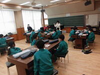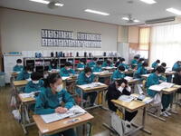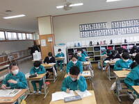 3年2組は音楽科。「聖者の行進」をリコーダーで演奏します。
