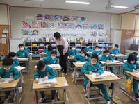 2年2組は国語科。漢字の広場の学習。主語と述語のつながりに気をつけて文章を書きました。