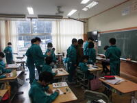 清掃前に担当の先生から「まゆみ小のお掃除の仕方」と、もうすぐ6年生から5年生にリーダーの役割が引き継がれることについてのお話しがありました。