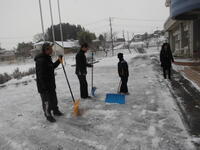 出勤した教職員が駐車場等の雪かきをしてくれました。