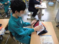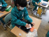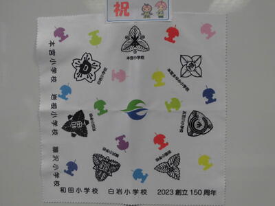 本宮小学校 岩根小学校 糠沢小学校 和田小学校 白岩小学校の創立150周年を記念して、すてきなタブレットクロスが市より配付されました。6年生はさっそくタブレットを取り出して画面をふいていました。