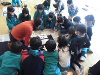 2023年12月5日 12時45分写真は1組の子どもたちが、2組さんの「おみせやさん」で買い物をしている様子です。