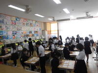 1年生は生活科。4校時のおみせやさん開店に向けて準備をしています。