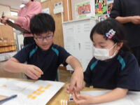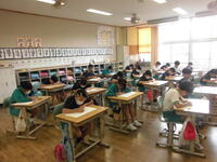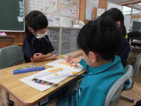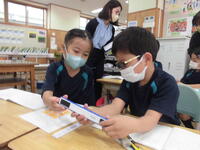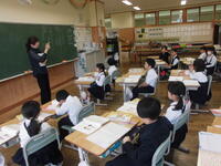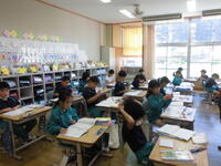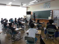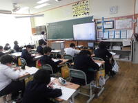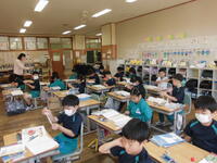 2校時には、1年2組の校内研究授業が行われました。先生方を前に少し緊張気味でしたが、子どもたちは楽しそうに学んでいました。