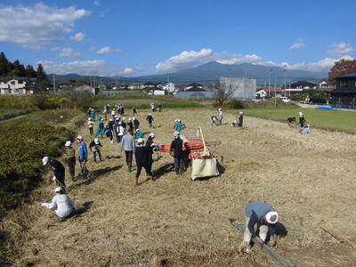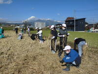 素晴らしい秋空の下、3校時には5年生が脱穀作業体験を行いました。まさに「実りの秋」を体験!