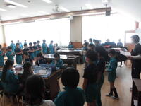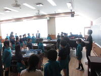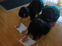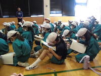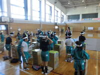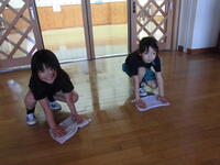 お昼休みに廊下を歩いていると、ランチルームの床を拭いている1年生がいます。声をかけてみると床がぬれているのでふいていたそうです。気づき、考え、実行する姿が一年生にも見られます。
