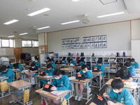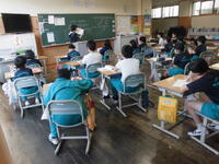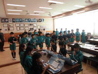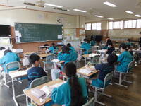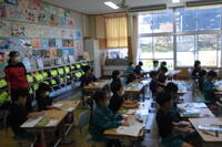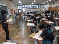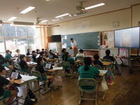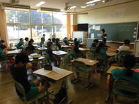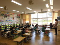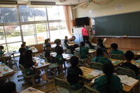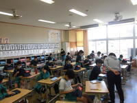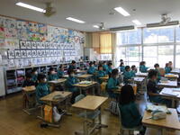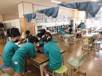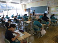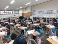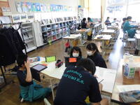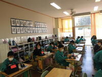 6年2組は理科、4年2組は算数科の復習問題、4年1組は国語科の授業です。