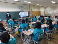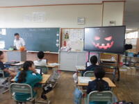 4年2組は外国語活動。ハロウィンから外国の習慣について関心を高めました。