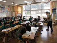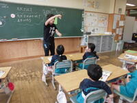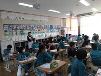 1年2組は国語科。早口言葉で楽しく勉強です。「校長先生は言えますか?」の質問多数・・・。