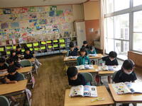 4年生は視聴覚室で発表会の練習です。どんどん上手になっています。