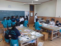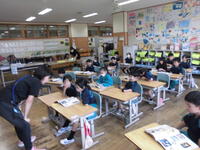 5年2組は理科。川の水による災害について調べました。