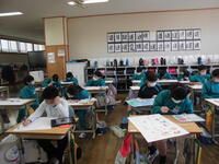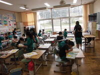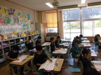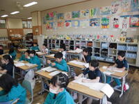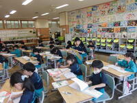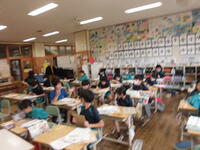 2年1組は図工。楽しそうに絵を描いていました。(何を描いていたのかはお子さんにおたずねください)