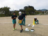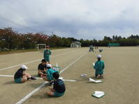 3校時 6年生は体育科「ランニングチャレンジ」で時間走に挑戦。ゴール後には心拍数を数えて自分ペースを振り返りました。