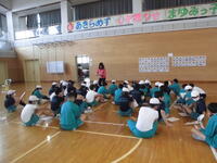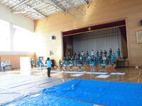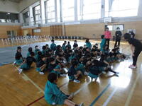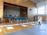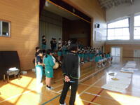 4年生は体育館でまゆみっ子発表会の練習です。