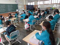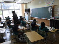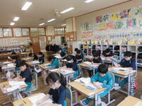 1年1組は国語科。漢字を使って文を書きなおします。