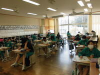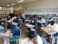 5年2組は算数科のテストです。集中しています。