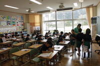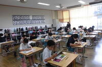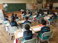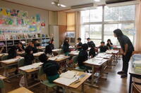1年2組は国語科。新しく習う漢字を学習しました。