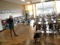 今日の一斉清掃の様子です。1年生から6年生までしっかり清掃活動に取り組んでいます。