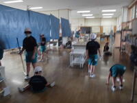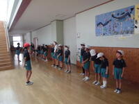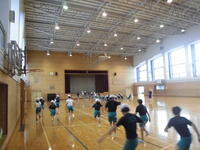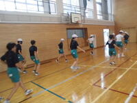 まゆみ小駅伝チームは参加希望者が今週になってぐんと増えて、なんと総勢50名となりました。1チームは選手10名ですので、まゆみ小は5チームが出場となる予定です。今日はタイム測定をする予定でしたが、強い雨が降ってきたため急遽体育館での練習となりました。