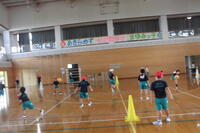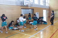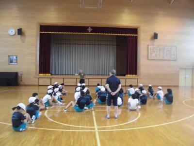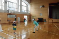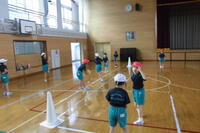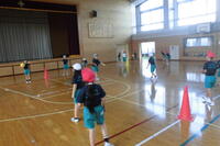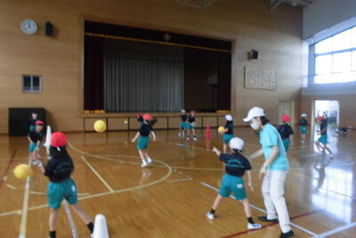 2年生は体育科。体育館でボールあそびを行っていました。