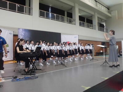大きな体育館でたくさんの市民の方を前に素晴らしい歌声を披露しました。