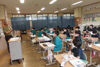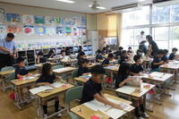 3年1組は道徳科。今日は講師の先生を招きして、あいさつの大切さについて考え合いました。