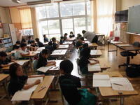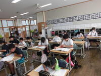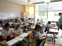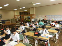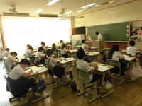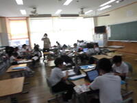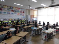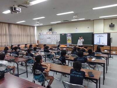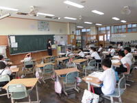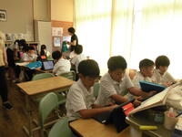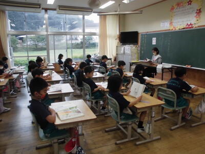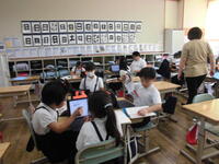 5年1組は社会科。米作りの農家の抱える課題をどのように解決しているのかを考え合いました。