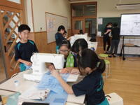 3校時。5年2組は家庭科です。ミシンの使い方を学びました。