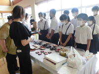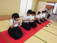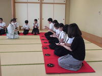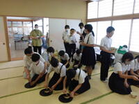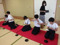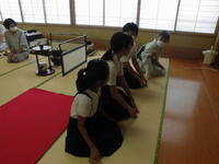 2校時と3校時には社会科の発展的学習として茶道教室が開かれました。講師の先生や学習ボランティアの方々にご指導いただきながら茶道について学びました。