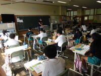 3校時には交通教室が開かれました。講師として郡山北警察署本宮分庁舎から2名のおまわりさんに来校いただきました。
