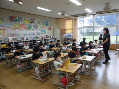 2年2組は国語科「お手紙」の学習。どんなお話なのかを音読をしながら話し合いました。