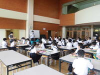 最後には生徒指導の先生から、夏休みの過ごし方で気を付けてほしい約束をしました。どんな約束かは是非お子さんから聞いてみてください。近年、夏休みの事故や怪我は多く発生しているので、ご家庭でも指導をお願いします。