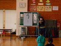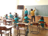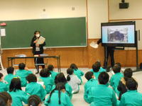 本日、市役所の商工観光課の方を講師に招き、3年生対象の出前授業が行われました。今回は、本宮市のお祭りをテーマとした授業ということで、安達太良神社にまつられている神様のことや秋祭りの由来、神輿の意味など、たくさんのことをクイズなども交えながら楽しく教えてもらいました。子どもたちも、しっかりとメモを取りながら話を聞き、小さい頃から親しんできた本宮市のお祭りのことを詳しく知ることができ、とてもよい学習となりました。