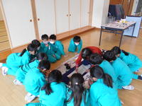 本日の昼休み、第3回校外子ども会が開かれました。子どもたちは、地区ごとに集まって2学期中の登校の反省や、冬休みの計画などについて話し合いました。