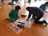 本日、書き初めボランティアの方においでいただいての書き初め指導がありました。3年生は初めて毛筆での書き初めに取り組むということで、講師の先生から筆の持ち方や筆運び、姿勢など基本的なことについて丁寧に教えてもらいました。