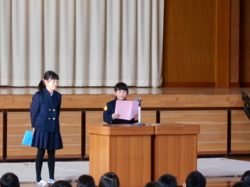 また、2名の代表児童が、自分自身2学期に努力して成果を上げたことや冬休み中に取り組みたいことを発表いたしました。
