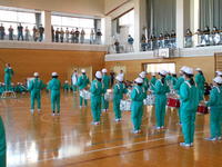 本番では、まずはじめに5・6年生による演奏が行われ、その後4・5年生に楽器が引き継がれました。主指揮によるあいさつの後、新鼓笛隊による「ドラムマーチ」「校歌」の演奏がありました。子ども達は、ほどよい緊張感の中精一杯の演奏を披露しました。無事に演奏を終えた4・5年生の顔はキラキラと輝いていました。
